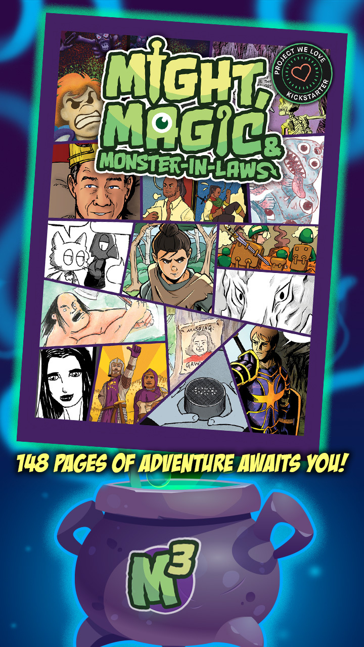 Might, Magic & Monster-in-Laws is a collection of 15 stories suitable for family and kids.  With over 140 pages of comic, you are in for an adventure!