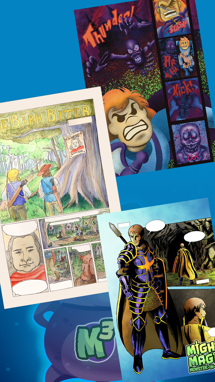Might, Magic & Monster-in-Laws is a collection of 15 stories suitable for family and kids.  With over 140 pages of comic, you are in for an adventure!